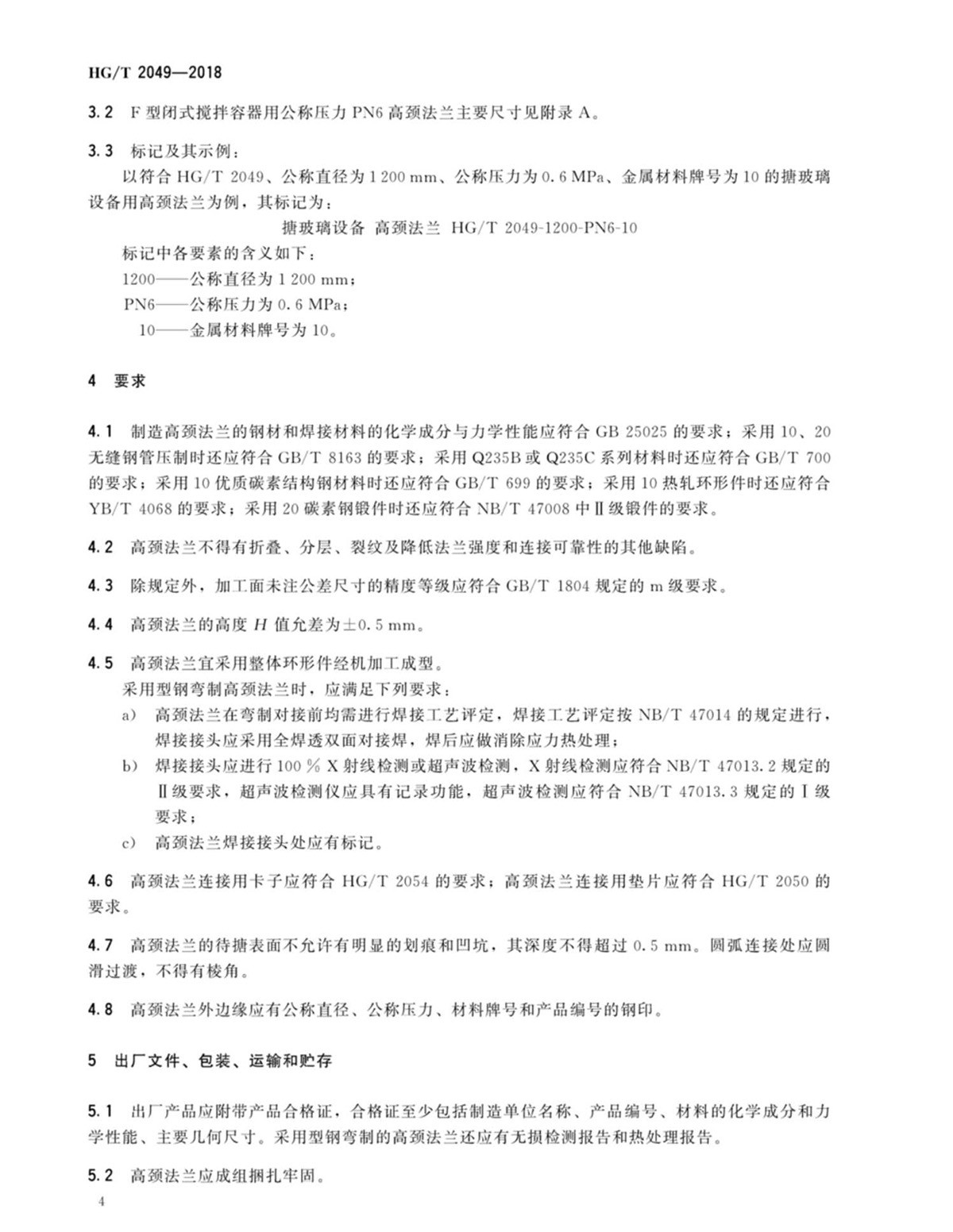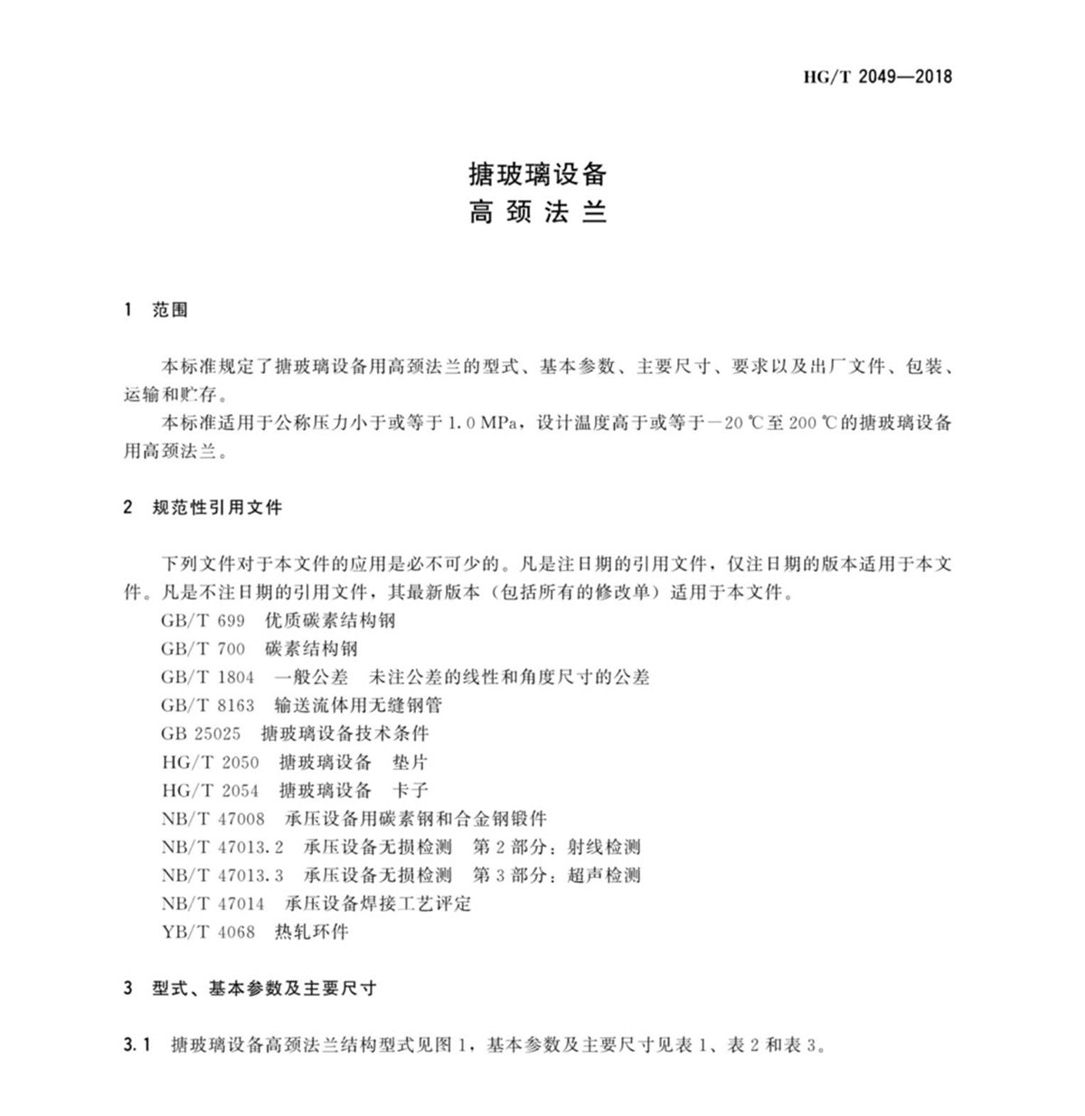 HG-T-2049-2018搪玻璃設(shè)備高頸法蘭