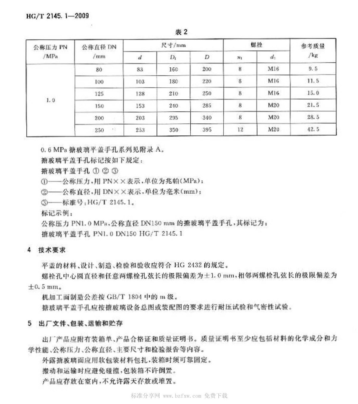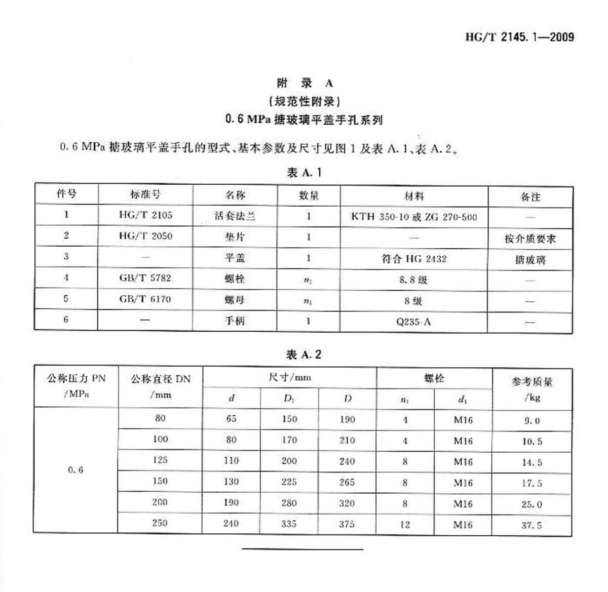 HG-T-2145.1-2009搪玻璃平蓋手孔