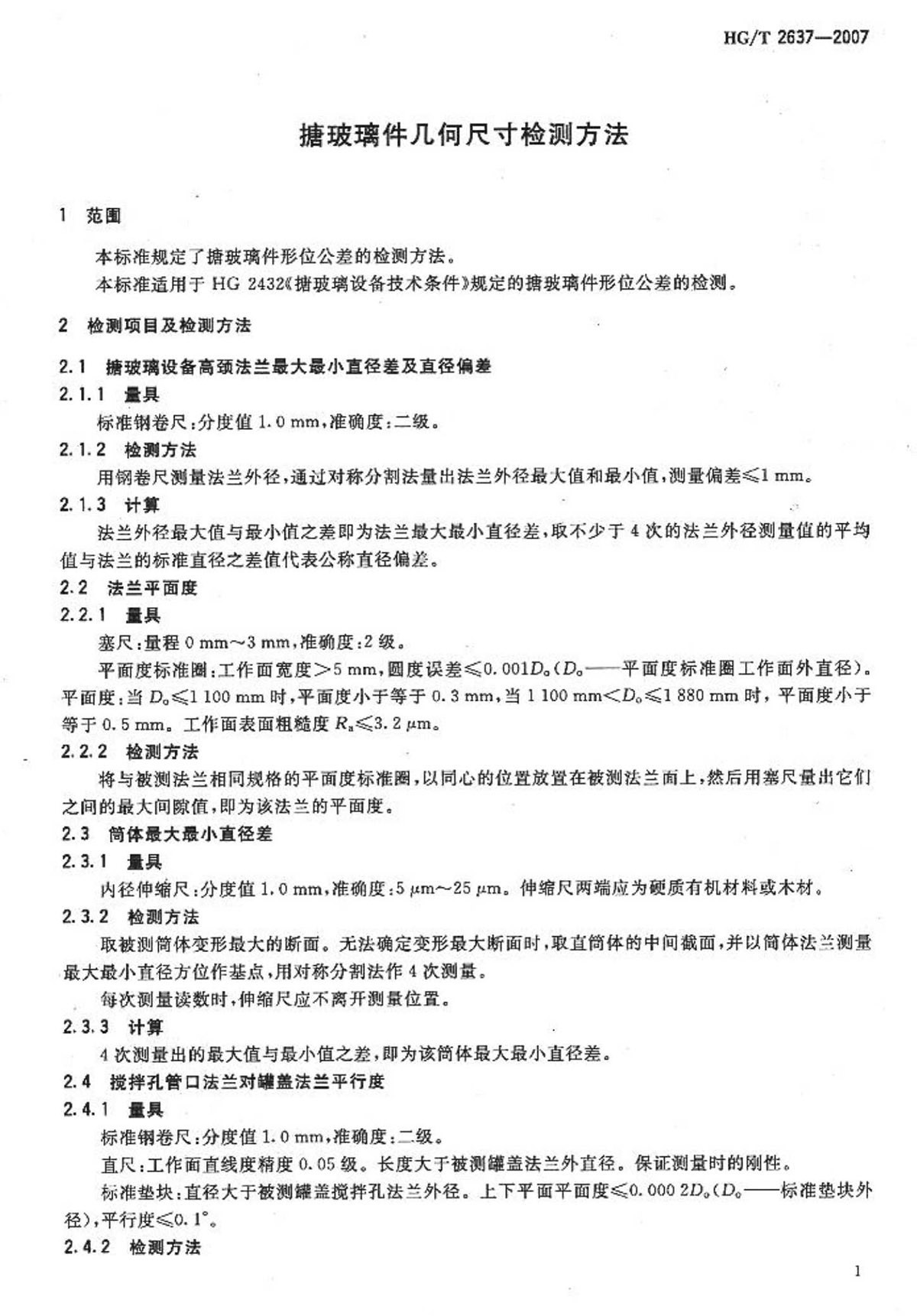 HG-T-2637-2007搪玻璃件幾何尺寸檢測方法